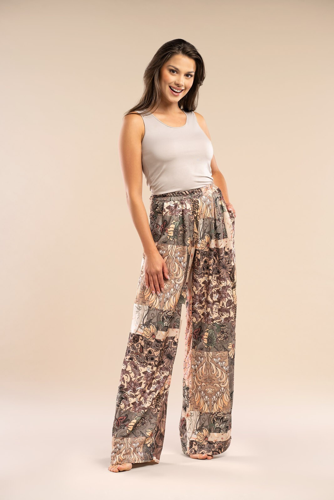 Dámske dlhé nohavice - vysokokvalitná vzorovaná saténová viskózna tkanina - rovný, voľný strih - elastický pás s látkou - pohodlné vrecká na bokoch - balené v plastovom vrecku Zloženie: 100 % saténová viskóza