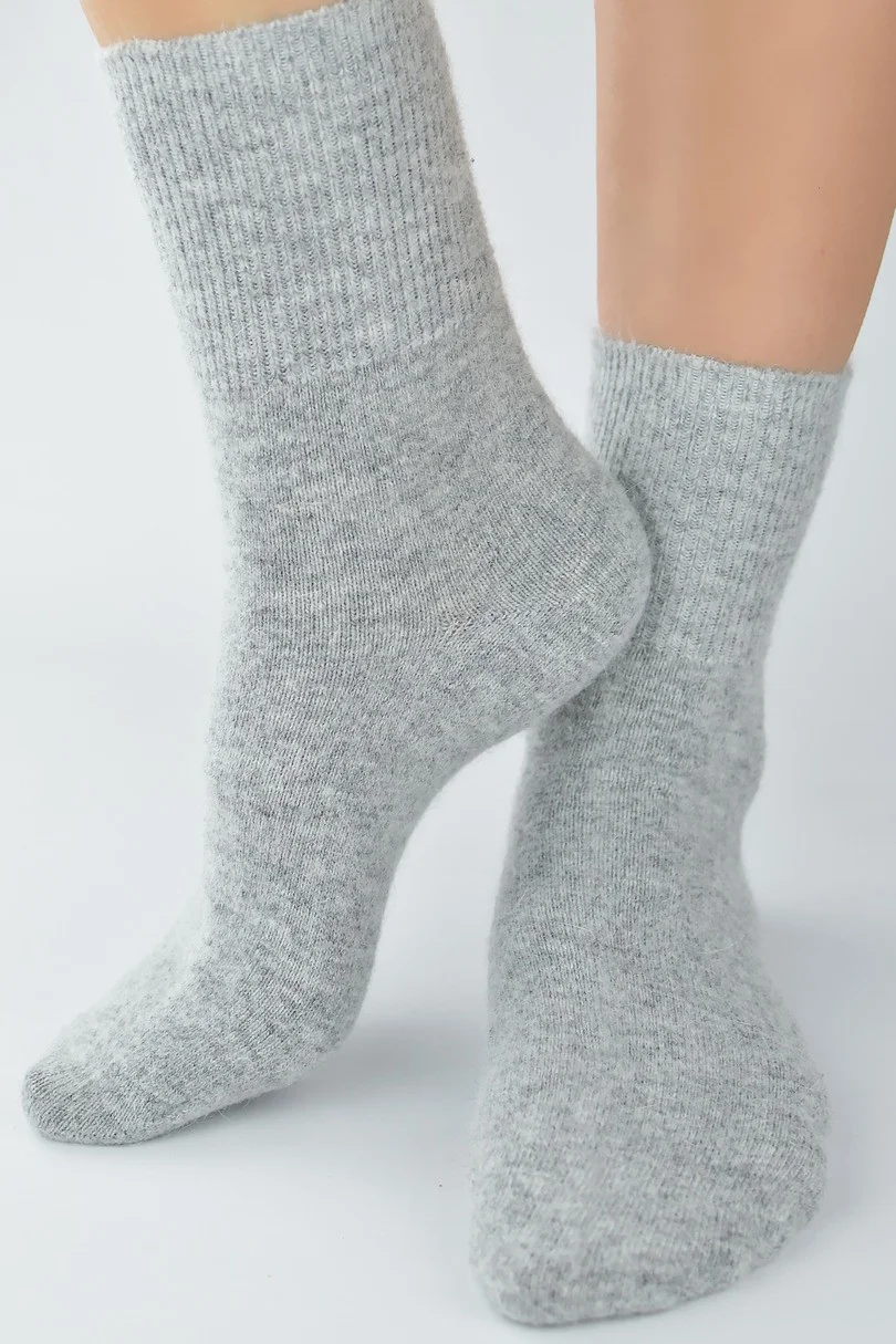 BEZTLAKOVÉ PONOŽKY HLADKÉ S ANGORSKOU PRIADZOU SB082 melanžově šedá 36-41
