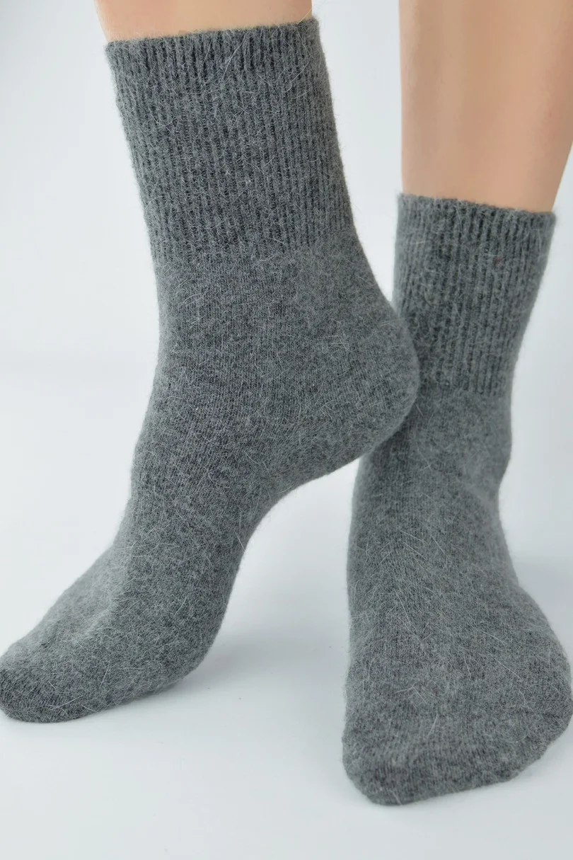 Mäkké, nadýchané dámske ponožky z angory a syntetických vlákien. Pohodlné nosenie vďaka netlačiacemu pásu..