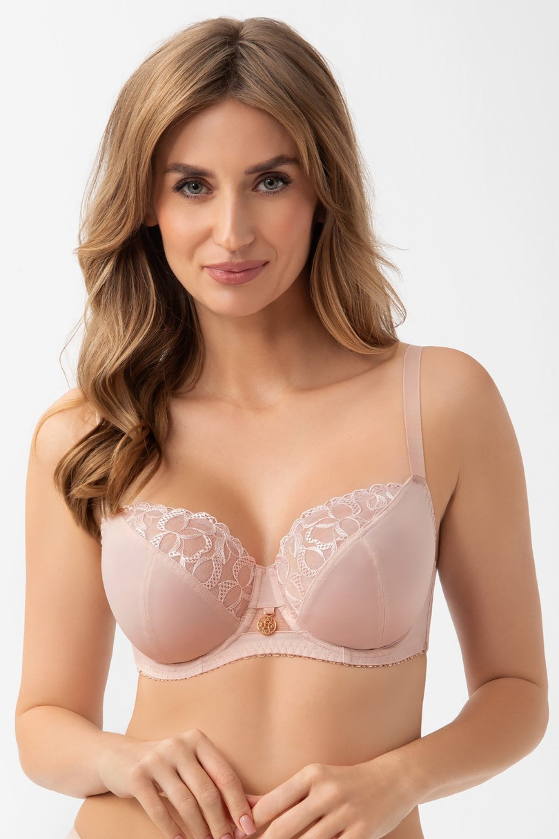 Mäkká podprsenka určená pre ženy so stredne veľkými, veľkými a veľmi veľkými prsiami Poskytuje efekt veľmi silného nadvihnutia a zhromaždenia poprsia do stredu trojdielne košíčky z nepriehľadného simplexného úpletu a výšivky podšité stabilným tylom Zadná časť z lycry pre veľmi dobré prispôsobenie a podporu Bočné kostice, ktoré zabraňujú zvlneniu látky V závislosti od veľkosti dvojradové alebo trojradové zapínanie z mikrovlákna s trojstupňovým nastavením obvodu Neodnímateľné, nastaviteľné ramienka v c