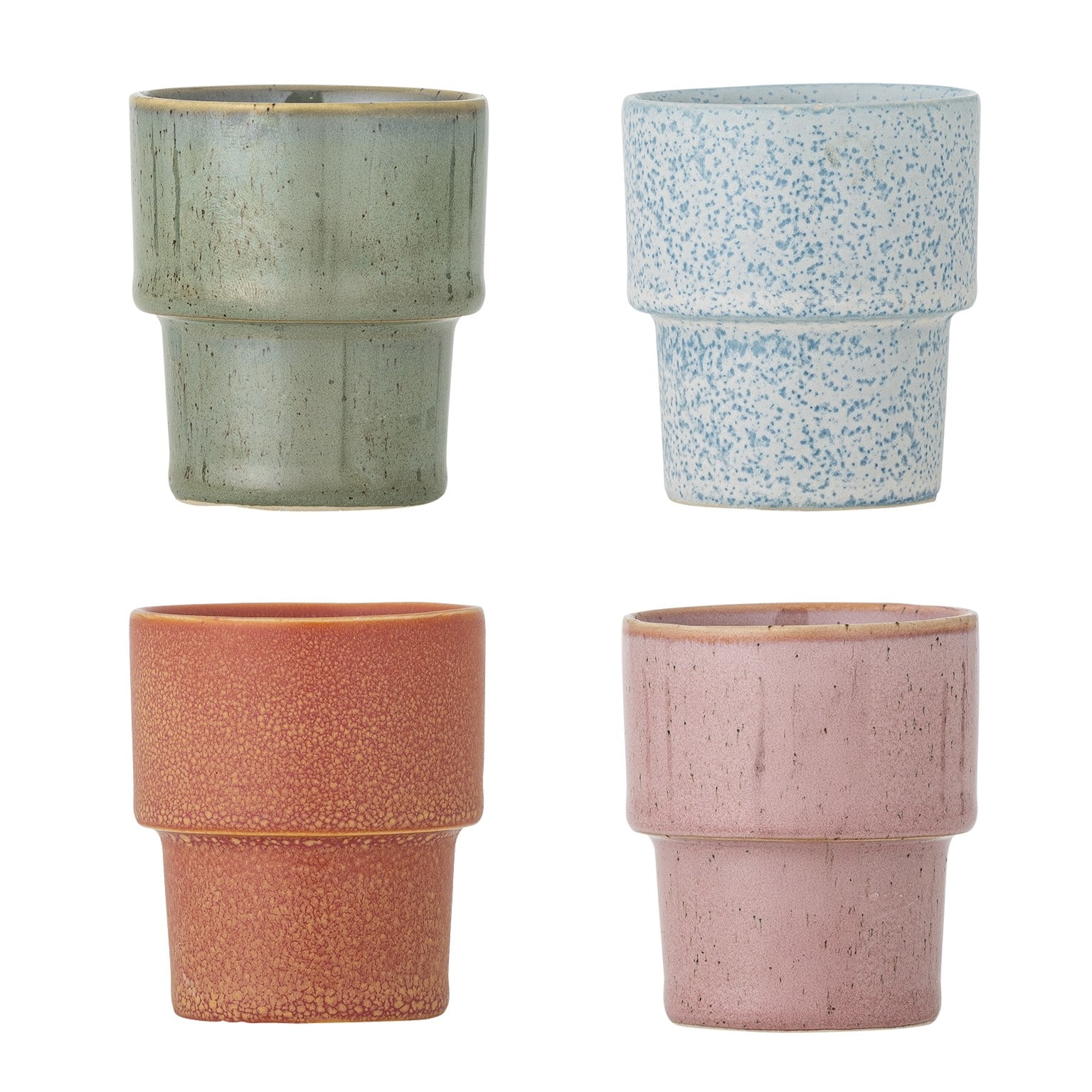 Sada štyroch hrnčekov Ewan espresso Multi od dánskej značky Bloomingville príjemne doplní váš jedálenský servis. Hrnčeky nemajú uško a pri pití sa budú príjemne zohrievať v dlani.