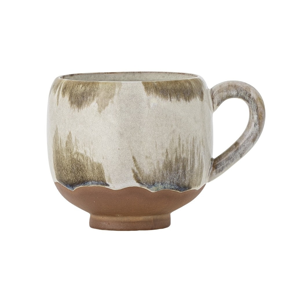 Je vyrobený z kameniny s reaktívnou glazúrou v zemitých tónoch a teplým terakotovým dnom. Vďaka efektu glazúry je každý kus jedinečný.