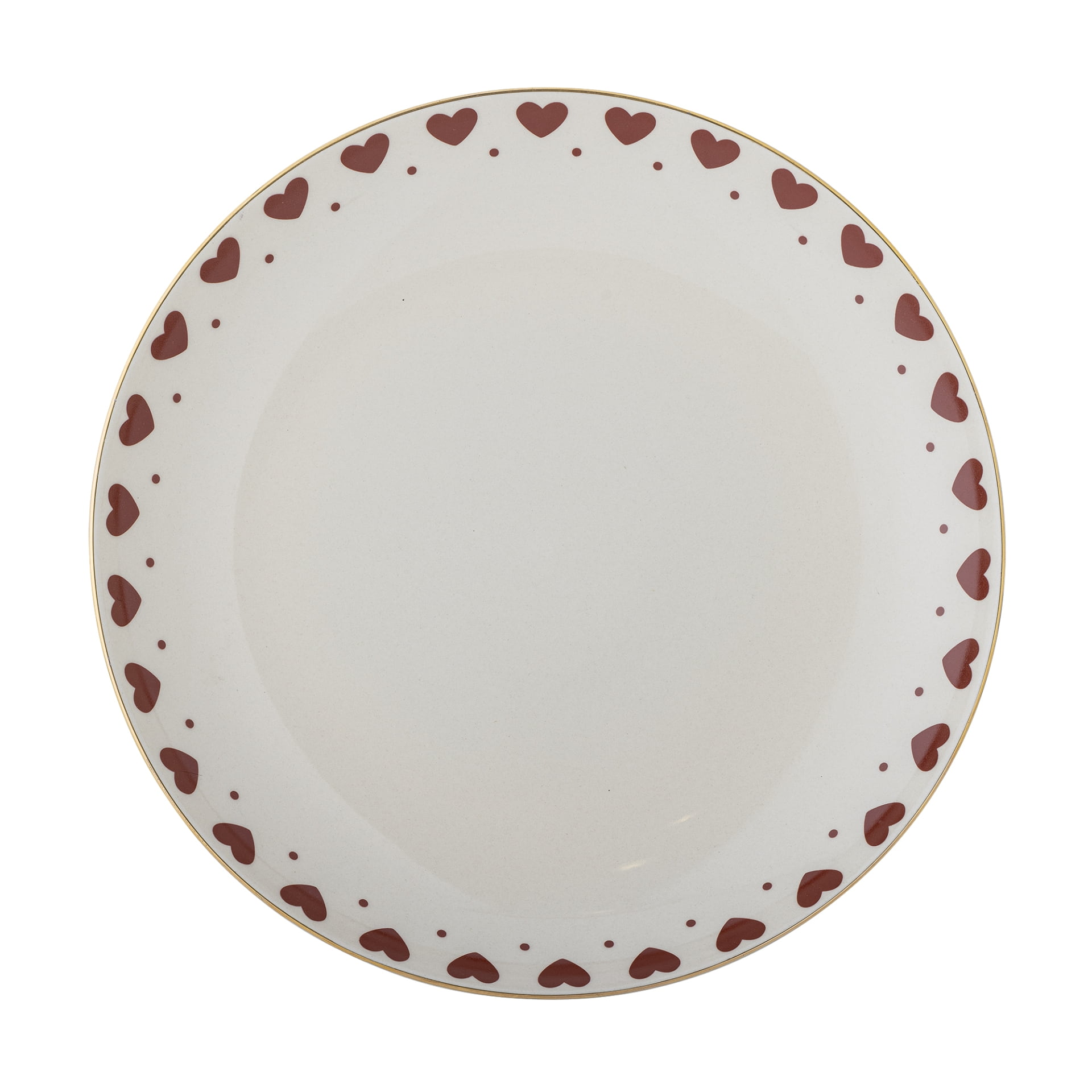 Hlboký tanier je vyrobený z kameniny a je presne tým, čo vianočné stolovanie určite potrebuje. Drobný dekor červených srdiečok a zlatých línií na okraji sa rozprestiera na svetlom pozadí a dodáva mu elegantný nádych.