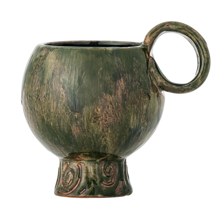 Zdobí ho tmavozelená reaktívna glazúra, ktorá môže byť na každom hrnčeku iná a jedinečná. Užite si svoju chvíľku pokoja a doprajte si nový hrnček. objem 250 ml / priemer 9 cm / výška 10,5 cm Vyrobené zo 100% kameniny.