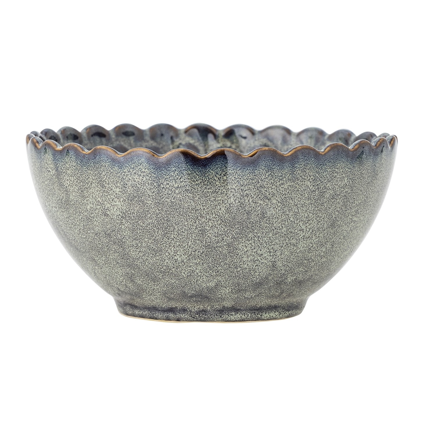 Reaktívna glazúra vytvára na povrchu výrazné a jedinečné rozdiely v odtieňoch a intenzite farieb - každý kus je tak originál. Jemný sivý tón, zvlnený okraj a plastický vzor na vnútornej strane dodávajú mieske sofistikovaný vzhľad.