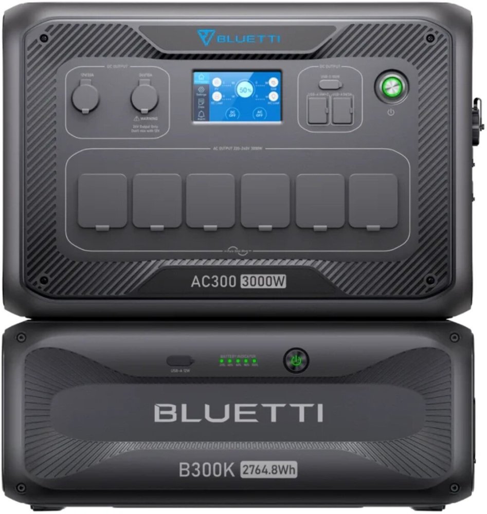 Doba nabíjení baterie: Žádné údaje k dispozici Počet zásuvek: 6 Počet portů USB-A: 4 Počet portů USB-C: 1 Ovládání aplikací: Ano Ještě více síly BLUETTI AC300 je rozšiřitelný měnič, který lze rozšířit na maximální kapacitu 11 059 Wh. Vaše rodina si bude moci užívat tento působivý výkon po celý den, například během výpadků proudu nebo na cestách. BLUETTI AC300 lze připojit až ke čtyřem rozšiřujícím modulům B300K (každý s kapacitou 2764 Wh). 5 způsobů nabíjení Systém správy baterií (BMS) poskytuje: Ochrana proti zkratu || Regulace napětí || Regulace teploty || Vestavěný solární regulátor MPPT Zásuvka (max. 1800 W) Fotovoltaické panely (max. 2400 W) Zásuvka zapalovače cigaret v autě Generátor energie Olověná baterie Možnost nabíjení stanice ze dvou zdrojů současně Větší kapacita pro každou situaci Modul BLUETTI B300K se přizpůsobí vašemu životnímu stylu, ať už chcete chránit svůj domov během výpadku proudu, nebo potřebujete energii na cestách. Moduly B300K lze stohovat nebo kombinovat s dalšími moduly BLUETTI a vytvořit tak personalizované řešení, které zajistí, že vás výpadek proudu nikdy nezastihne, ať jste kdekoli.