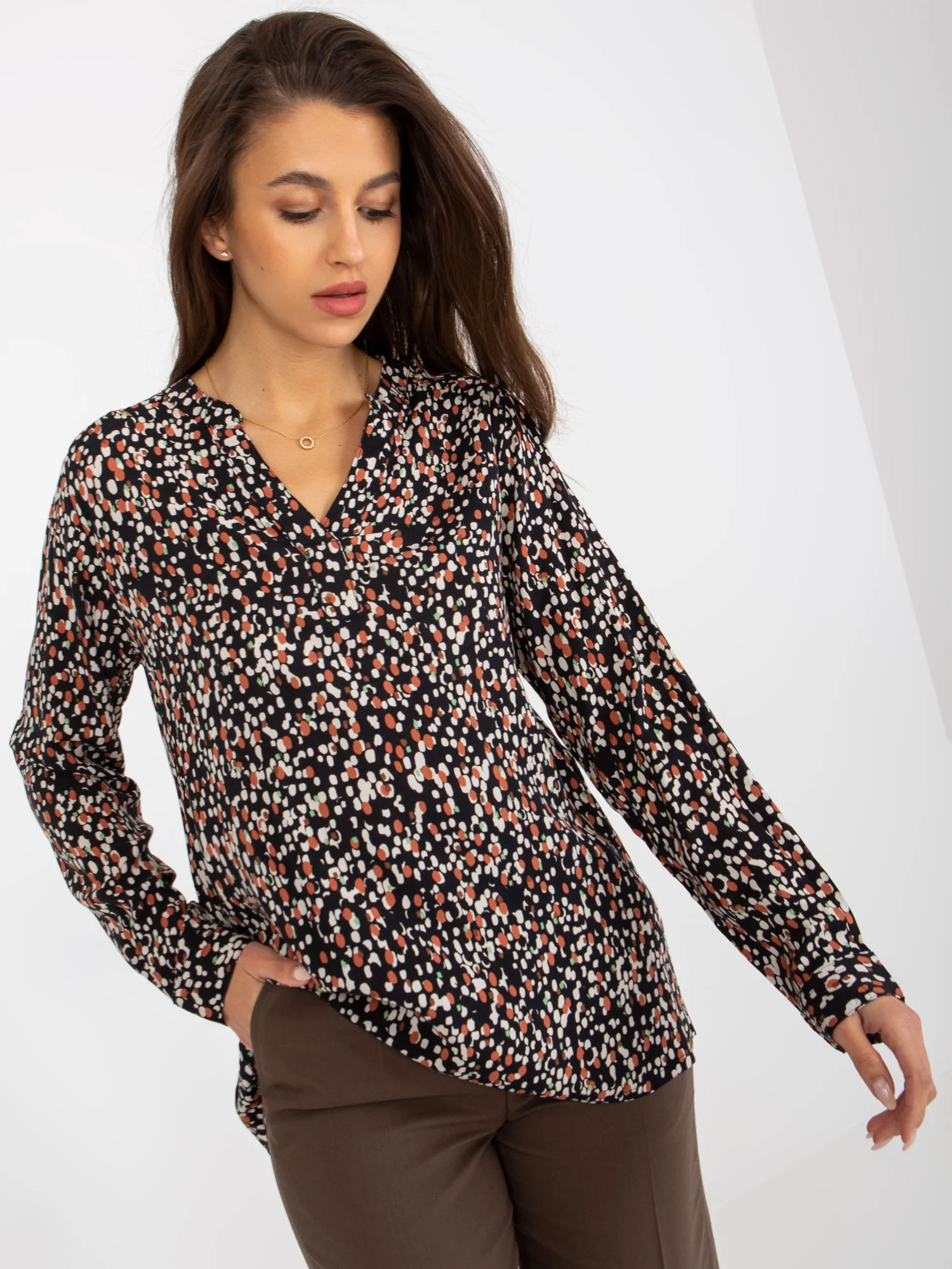 Čierna blúzka s potlačou a véčkovým výstrihom SUBLEVEL . Kód produktu: D73771M11081A dominantný dizajn: potlač štýl: ležérny príležitosť: ležérna, pracovná, do mesta, na prechádzku Modelka má na sebe veľkosť S. Rozmery modelky: výška 172 cm, prsia 88 cm, pás 63 cm, boky 92 cm. Rozmery blúzky vo veľkosti S merané na plocho: šírka v podpazuší - 50 cm, dĺžka rukáva - 58 cm, celková dĺžka (vpredu) - 63 cm, celková dĺžka (vzadu) - 70 cm.Veľkosť Alt.VýškaObvod hrudníkaVonkajší. dĺžka. rukávVnútorný. dĺžka rukávovS36160-164825949M38162-172866151L40164-174916353XL42166-178966555