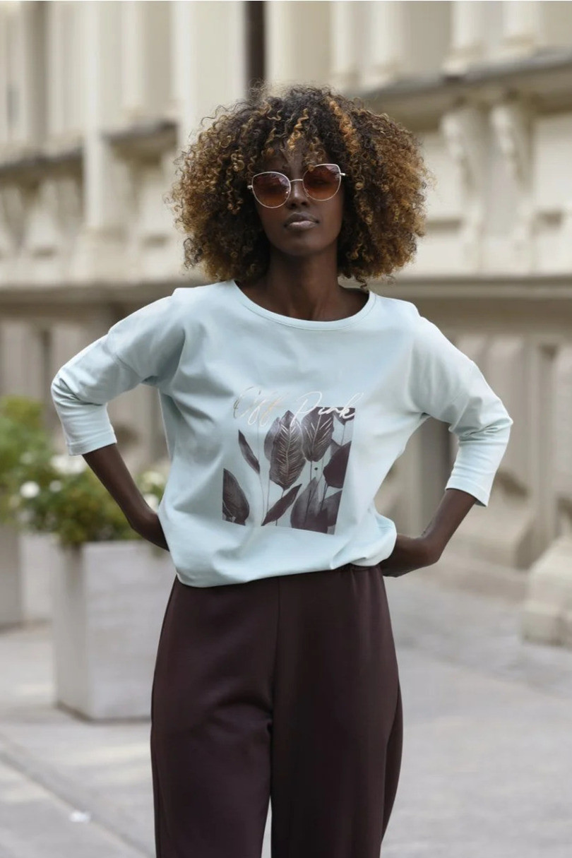Blúzka Emanuela je ideálna pre ženy, ktoré ocenia ľahký štýl a funkčnosť. 3/4 dlhé rukávy dodávajú blúzke ľahkosť a sú ideálne na teplejšie dni aj prechodné obdobie. Dlhší zaoblený zadný diel je praktickým a módnym riešením - poskytuje voľnosť pohybu a dobre sa prispôsobí postave. Priliehavý strih zvýrazňuje ženské tvary a jemná potlač s jesenným motívom na prednej strane blúzky dodáva celku originálny charakter. Blúzka je vyrobená z kvalitnej bavlny s elastanom, čo zaručuje pohodlie pri nosení a dobrú cirkuláciu vzduchu počas celého dňa.
