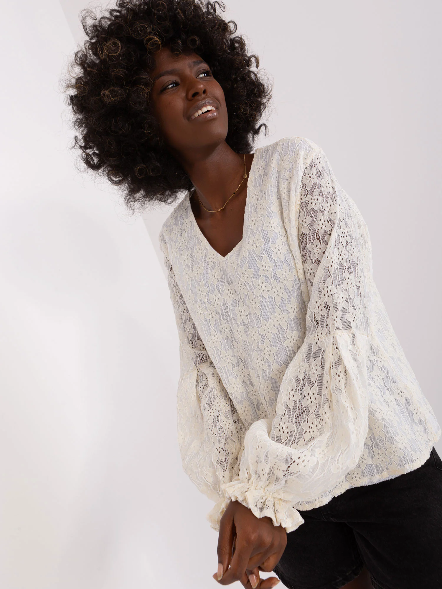 Dámska spoločenská blúzka v ecru farbe s čipkou. kód výrobku: LK-BZ-509203.08P dominantný vzor: lazúry štýl: elegantný príležitosť: neformálna, pracovná, rande, formálne stretnutie Modelka má na sebe veľkosť S/M. Rozmery modelky: výška 168 cm, hrudník 82 cm, pás 62 cm, boky 93 cm. Rozmery blúzky vo veľkosti S/M merané na plocho: šírka v podpazuší - 60 cm, dĺžka rukáva - 59 cm, celková dĺžka - 59 cm. Veľkosť Alt.VýškaObvod hrudníkaVonkajší. dĺžka. rukávVnútorný. dĺžka rukávovS/M36/38160-17282-8659-6149-51L/XL40/42164-17891-9663-6553-55