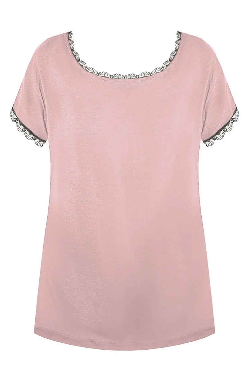 Dámska viskózová blúzka s jemnými krajkovými lemovanými rukávmi, okrúhly výstrih.Zloženie: 70% viskóza, 14% polyamid, 8% elastan, 8% ostatné .