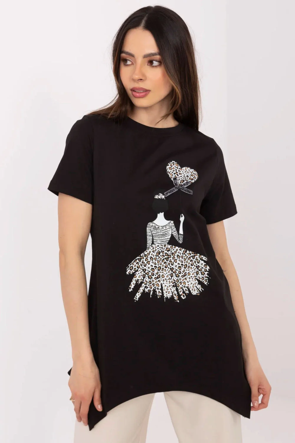 Dámska košeľa voľného strihu ideálna na každý deň, ktorá spája pohodlie s módnym vzhľadom. Je vyrobená z kvalitnej zmesi bavlny a elastanu, poskytuje pohodlné nosenie a ideálne sa prispôsobí postave. Model štandardnej dĺžky s krátkymi rukávmi a klasickým okrúhlym výstrihom. Košeľa sa bez zapínania na gombíky veľmi pohodlne nosí. Dominantný vzor a zvieracia potlač priťahujú pozornosť a aplikácie drahokamov a zirkónov dodávajú košeli výnimočný lesk a originálny charakter. Skvelý dizajn pre ženy, ktoré ocenia pohodlie a módny, nenáročný štýl na každý deň. bavlna 95 % Elastan 5 % Veľkosť Obvod pása Obvod cez prsia L94-97 cm90-93 cmM90-93 cm86-89 cmS86-89 cm82-85 cmXL98-101 cm94-97 cm