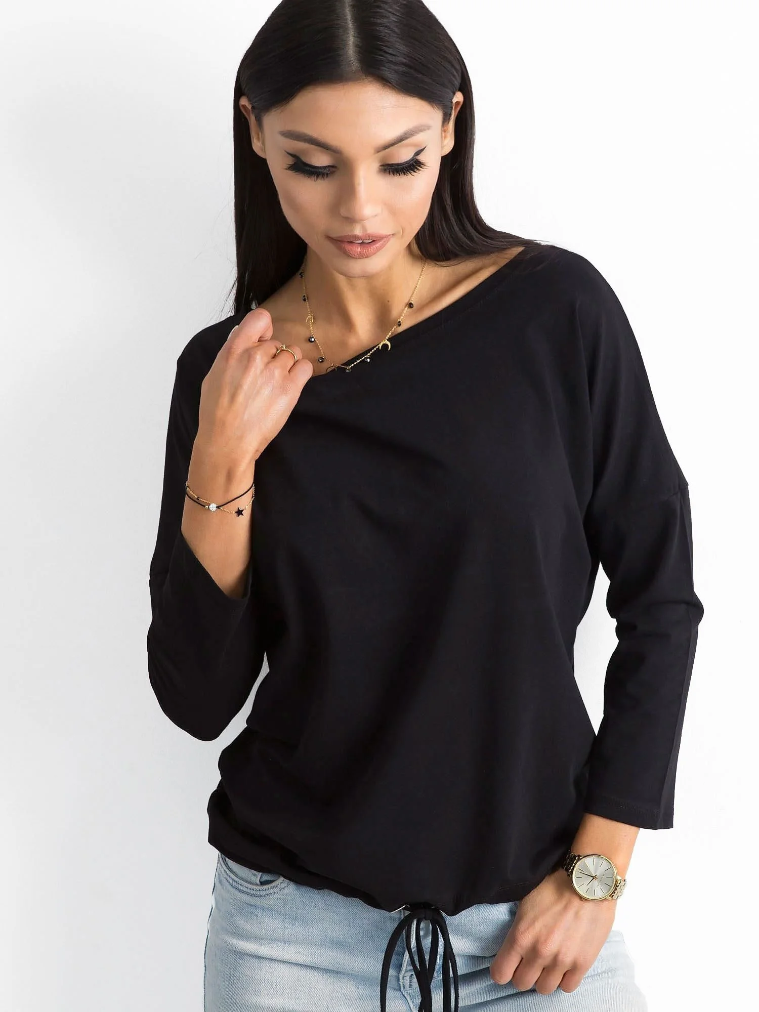 Czarna bluzka Fiona. Górne części garderoby to bardzo ważne elementy każdej kobiecej szafy. Trudno w ogóle wyobrazić sobie bez nich nasze codzienne funkcjonowanie. Szczególną rolę odgrywają wśród nich modne bluzki, które stanowią zwykle znaczną część naszych szuflad i półek. Dlatego zwróć uwagę na tę bluzkę basic, która idealnie sprawdzi się w każdej sytuacji i założysz ją na każdą nieformalną okazję. Gładka bluzka z bawełny to najlepszy wybór na co dzień, ponieważ zapewnia wyjątkową wygodę noszenia, komfort przez cały dzień oraz przewiewność. Ten model wykonano z oddychającej bawełny z dodatkiem odrobiny elastanu, który sprawia, że oferowana bluzka basic jest dodatkowo miękka i miła w kontakcie ze skórą. Czarna bluzka basic to absolutny must have, który sprawdzi się idealnie do codziennych stylizacji, ale gdy trzeba poradzi sobie także w nieco bardziej wyjściowych zestawach. Jest nie tylko uniwersalna i pasuje do wszystkiego, ale także emanuje kobiCzarna bluzka bawełniana to bez dyskusji podstawowy element garderoby każdej kobiety ceniącej najnowsze trendy oraz minimalistyczny sposób ubierania się. Jest więc absolutnym must have'em, który powinna mieć w szafie każda z Was. Prezentowany model z serii Fiona oprócz kobiecego dekoltu posiada również modne rękawy 3/4 oraz subtelny ściągacz na dole zakończony dwoma troczkami. Takie pozornie nieistotne detale pięknie podkręcają wygląd bluzki basic, nie odbierając jej jednocześnie minimalistycznego charakteru. Ponadto ta czarna bluzka basic ma również trochę luźniejszy fason, który wygodnie układa się na sylwetce, tuszuje mniejsze mankamenty figury oraz jest bardzo komfortowy w noszeniu. Taki design czyni z niej najlepszy wybór na co dzień, ponieważ gwarantuje uniwersalność i idealne dopasowanie do wszystkich pozostałych elementów garderoby. Jeśli potrzebujesz innych kolorów bluzki basic z tego modelu, to przejrzyj całą gamę dostępnych odcieni i wybierz już teraz swoj materiálové zloženie: 90 % bavlna, 10 % elastanspôsob prania: pranie v práčke pri 30 °CModelka má na sebe veľkosť S. Rozmery modelky: výška 168 cm, prsia 89 cm, pás 60 cm, boky 91 cm.Veľkosť alt.VýškaObvod hrudníkaVonkajšia dĺžka rukávovVonkajšia dĺžka rukávovXS34156-164785747S36160-164825949M38162-172866151L40164-174916353XL42166-178966555