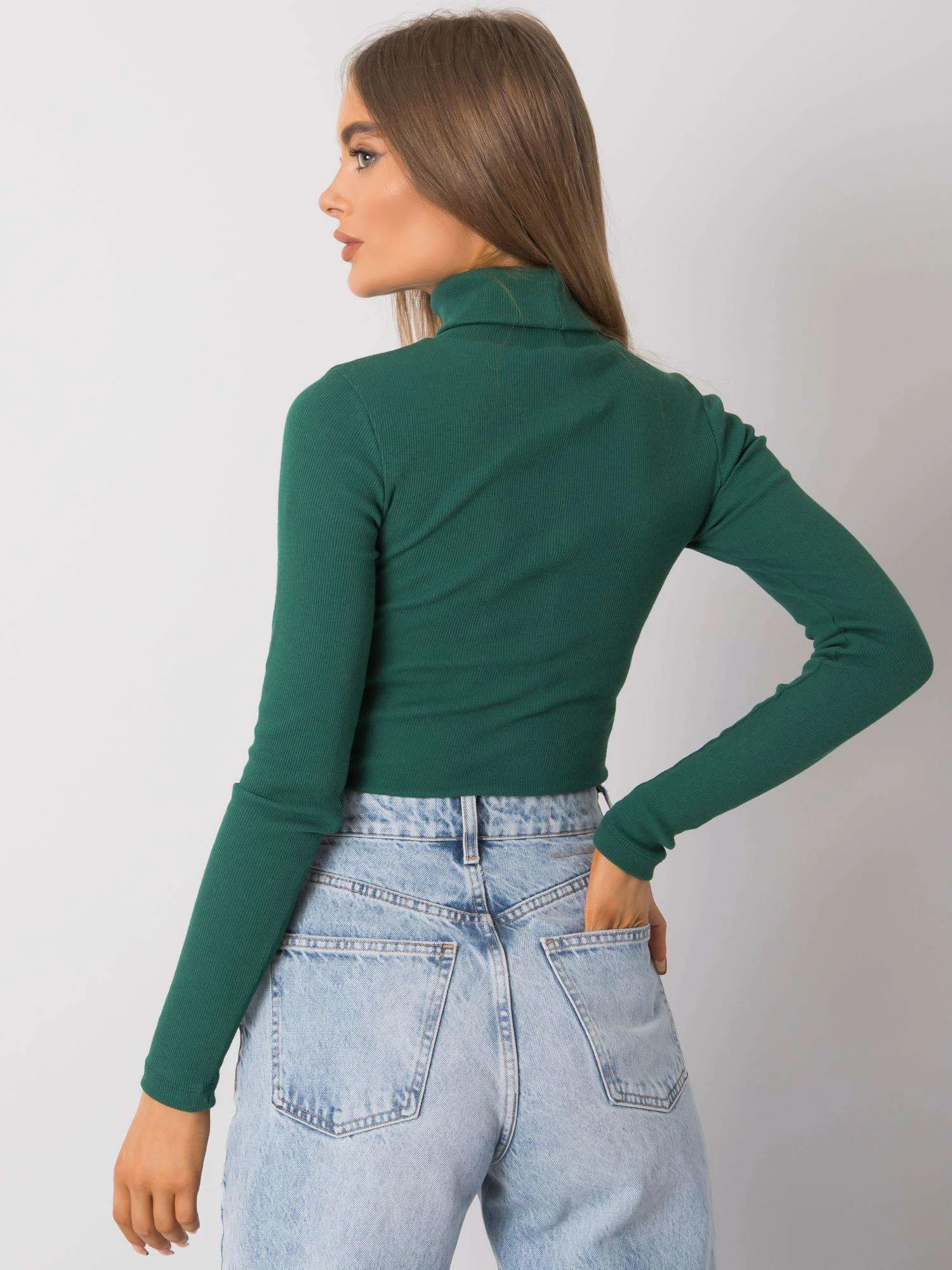 RUE PARIS Tmavozelený rebrovaný rolák pre ženy. Typ tkaniny: rebrovaný zloženie materiálu: 90 % bavlna, 10 % elastan spôsob prania: pranie v práčke pri 30 °C Modelka má na sebe veľkosť S/M. Miery modelky: výška 174 cm, prsia 83 cm, pás 62 cm, boky 96 cm. Rozmery blúzky vo veľkosti S/M merané na plocho: šírka v podpazuší - 33 cm, celková dĺžka - 60 cm, dĺžka rukáva - 60 cmVeľkosť alt.VýškaObvod hrudníkaVonkajšia dĺžka rukávaVonkajšia dĺžka rukávaS/M36/38160-17282-8659-6149-51L/XL40/42164-17891-9663-6553-55