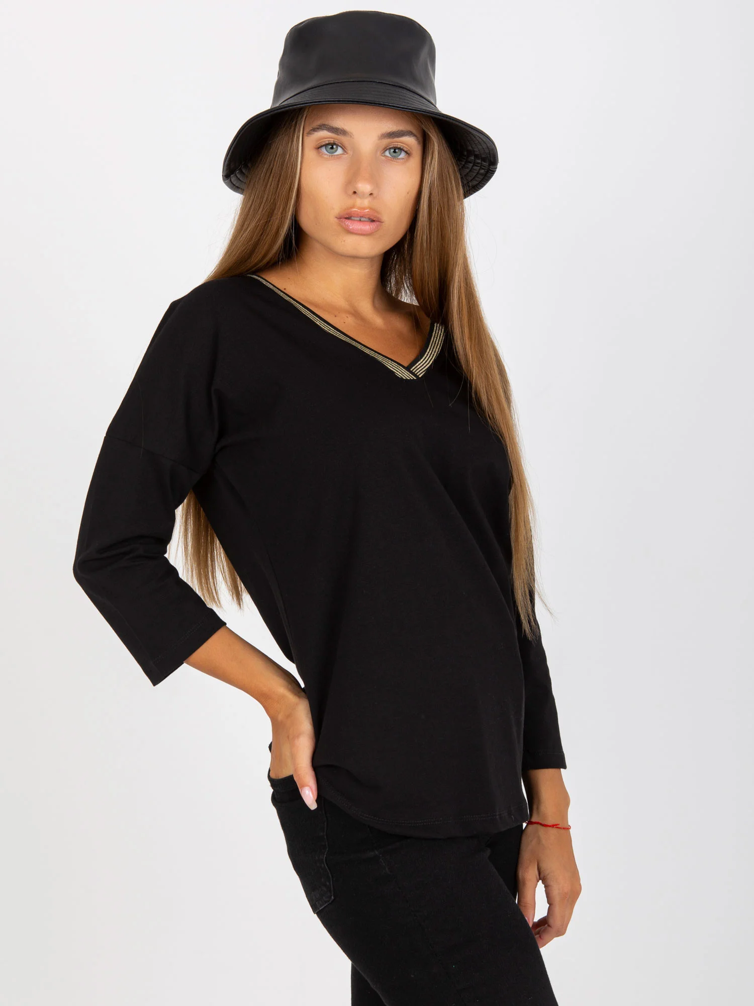 Bavlnená čierna blúzka na každodenné nosenie RUE PARIS . zloženie tkaniny: 90 % bavlna, 10 % elastan Spôsob prania: pranie v práčke pri 30 °C Kód produktu: RV-BZ-8050.04 dominantný vzor: jednofarebný štýl: ležérny príležitosť: ležérny, do mesta, do práce, letný Modelka má na sebe veľkosť S/M Rozmery modelky: výška 163 cm, prsia 86 cm, pás 56 cm, boky 88 cm. Rozmery blúzky vo veľkosti S/M merané na plocho: šírka v podpazuší - 54 cm, dĺžka rukáva - 42 cm, celková dĺžka - 61 cm.Veľkosť Alt.VýškaObvod hrudníkaVonkajší. dĺžka. rukávVnútorný. dĺžka rukávovS/M36/38160-17282-8659-6149-51L/XL40/42164-17891-9663-6553-55
