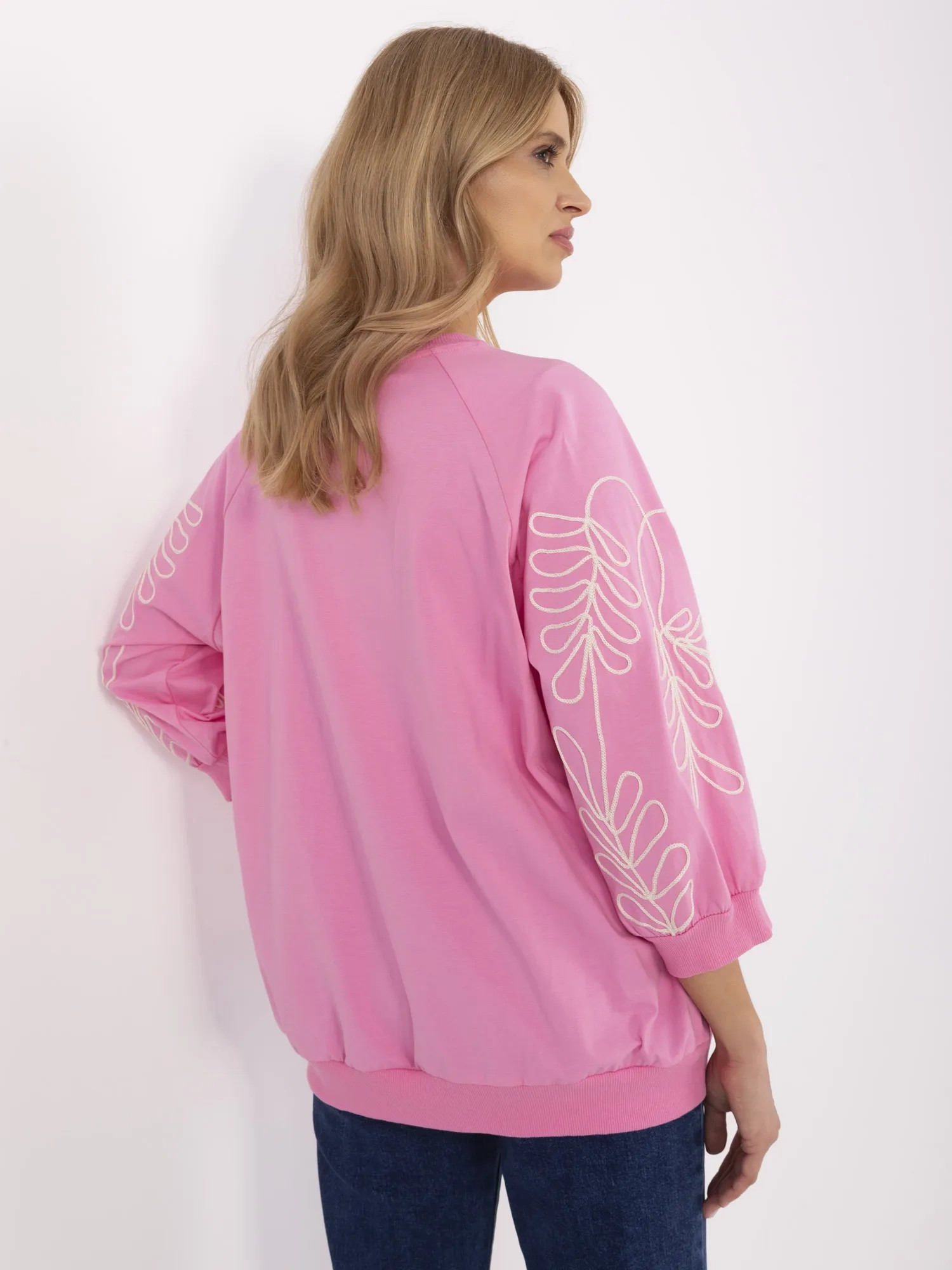 Modelka má na sebe jednu veľkosť. miery modelky: výška 175 cm, prsia 90 cm, pás 66 cm, boky 94 cm. Rozmery blúzky v jednej veľkosti merané na plocho: šírka blúzky v podpazuší - 64 cm, dĺžka rukávov - 29 cm (od podpazušia), šírka v bokoch - 48 cm, dĺžka blúzky - 67 cm.
