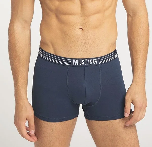 Pánske boxerky- vysokokvalitná bavlna- široký, pohodlný elastický pás s logom MUSTANG- ploché švy- zabalené v plastovom vreckuZloženie: 95% bavlna, 5% elastan; col. šedá 90% bavlna, 5% viskóza, 5% elastan