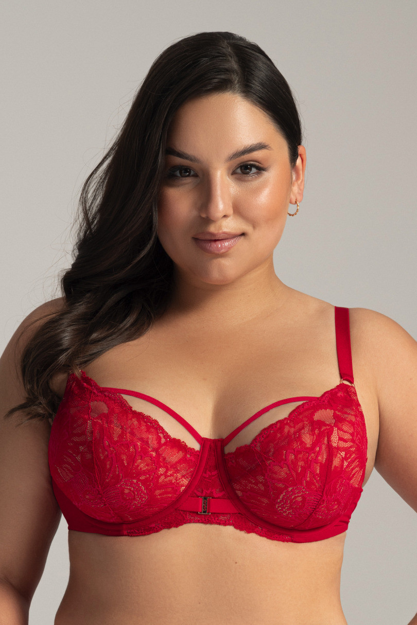 Polotuhá podprsenka, konštrukcia K-925Elegancki i zmysłowy biustonosz Grace to propozycja, która z pewnością przyciągnie spojrzenia. Model ten to półusztywniany fason, który idealnie łączy wygodę z wyjątkowym designem. W dolnej części miseczek znajduje się miękka, beżowa pianka, która zapewnia stabilizację biustu, a w górnej – delikatny, transparentny tiul dodający lekkości i zmysłowości. Misternie tkana czerwona koronka pięknie zdobi całość, dodając bieliźnie luksusowego charakteru. Uroku dopełnia złota klamerka wysadzana cyrkoniami, umieszczona na subtelnie wyeksponowanym mostku, która podkreśla wyrafinowany styl tego biustonosza. Konstrukcja K-925 zastosowana w modelu AV 2157 gwarantuje idealne dopasowanie, wygodę noszenia oraz doskonałą stabilizację biustu, odciążając jednocześnie plecy i ramiona.