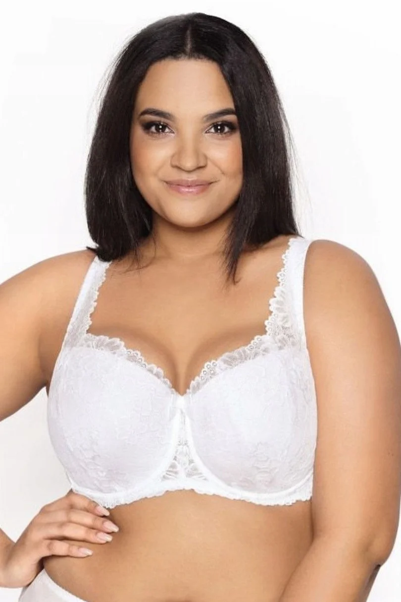 Polomäkká vystužená podprsenka s kvetinovou čipkou, bavlnená podšívka na vnútornej strane košíčkov, čipkované boky, nastaviteľné ramienka, neodnímateľná. Zloženie: 44 % polyamid, 17 % polyester, 17 % bavlna, 17 % polyuretán, 5 % elastan.