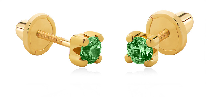 Brilio Náušnice zo žltého zlata so zelenými zirkónmi 14/188.881/17ES-N