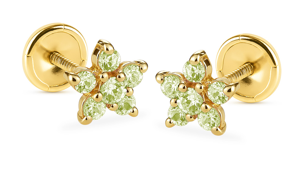 Brilio Zlaté hviezdičkové náušnice so syntetickým olivínom 14/188.961/17OLZIR