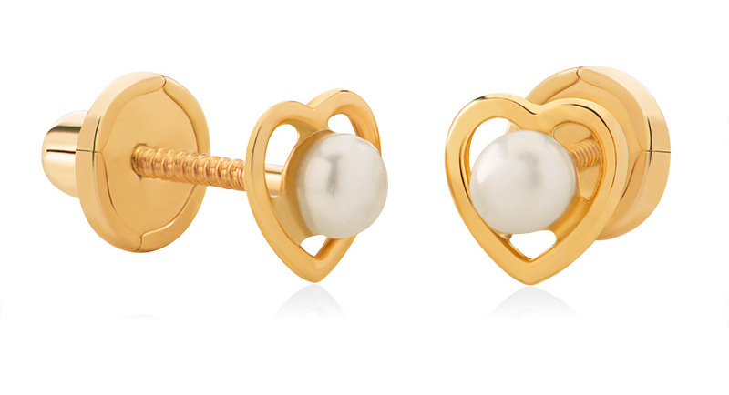 Brilio Zlaté náušnice Srdiečka s pravou perlou 14/141.891/17P