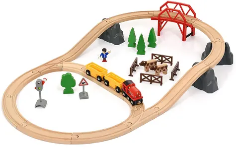 Brio vláčikodráha Vidiecka dráha s mostom (33909) / 36 dielov / vlak / vagóny / koľaje / most / príslušenstvo / od 3 rokov