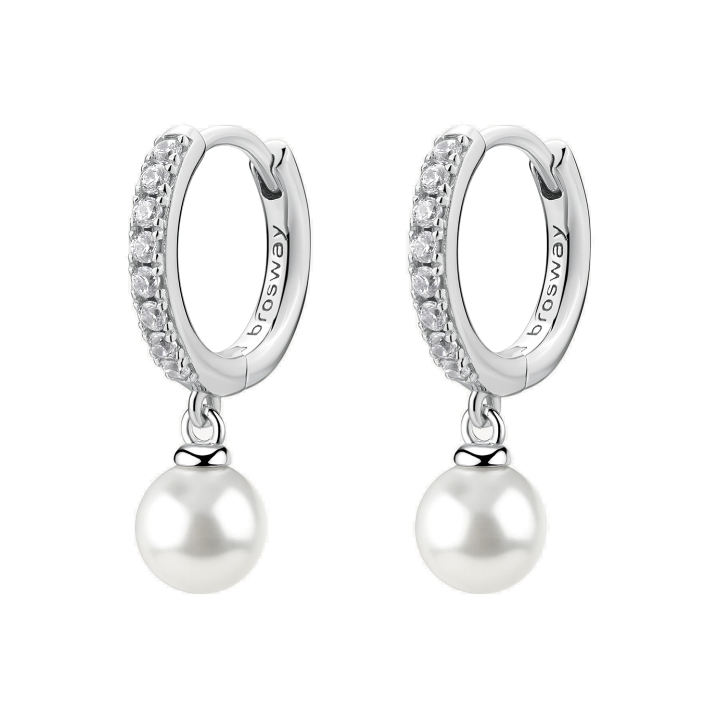 Brosway Strieborné kruhové náušnice so zirkónmi a perlou Infinite White Fancy FIW144