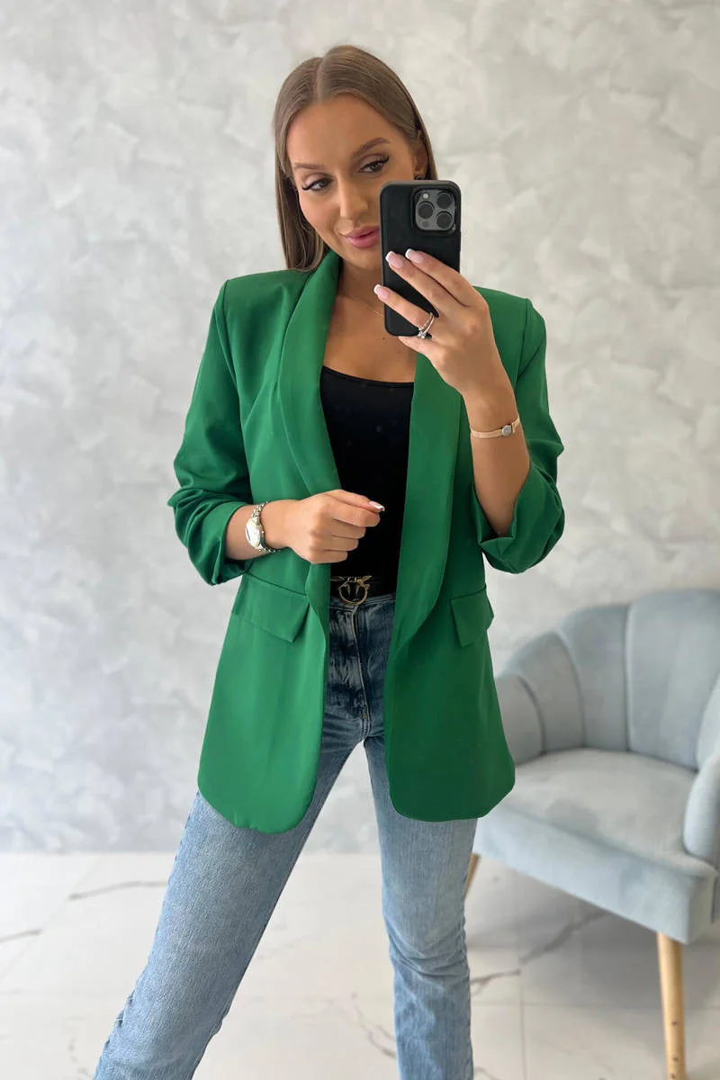 Predstavujeme vám elegantné sako. Sako bez gombíkov s prednými klopami. Tento model bude skvelou voľbou pre mnohé typy siluet a dodá každému stylingu ležérnu eleganciu. Je základom každého šatníka a štýlovým kúskom na špeciálne úlohy - pre každé ročné obdobie a každú príležitosť. Sako je vyrobené z kvalitného materiálu. Sako je podšité. Veľkosť je univerzálna a hodí sa pre dámske veľkosti S, M a L.TALIANSKA VÝROBAMateriálové zloženie:materiálové zloženie: 100 % polyesterRozmery:Šírka v podpazuší: šírka v podpazuší 45 cmDĺžka rukávu od ramien: dĺžka od ramien: 49 cmDĺžka rukávu od podpažia: 29 cmCelková dĺžka: 71 cm