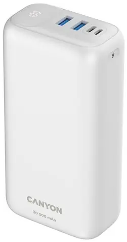 Canyon CNE-CPB301W biela / Powerbanka / 30000mAh / QC 3.0 PD 20W / 1x USB-C / 2x USB-A (CNE-CPB301W)