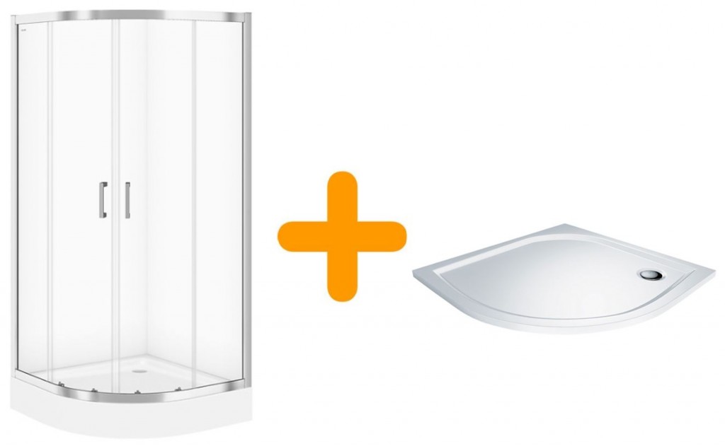 SPRCHOVÝ KÚT štvrťkruh 90x90 TRANSPARENT SKLO + vanička (S158-005-SET1) hĺbka: 90 cm výška: 185 cm nastaviteľný profil: 30 mm inštalácie: univerzálny rádius: R55 inštalačný rozmer: 885 - 900 mm šírka vstupu: 510 mm Štvrťkruhová sprchová zástena BASIC v chrómovom prevedení profile a s posuvnými sklenenými dverami z bezpečnostného skla o sile 5 mm, ktoré sú doplnené elegantnými kovovými madlami v chrómovom prevedení. V hornej a spodnej časti sprchovacieho kúta sú dvojité chrómová kolieska, ktoré zvyšujú komfort rýchleho uvoľnenie pri čistení sprchovacieho kúta.LAVILLE sprchová vanička štvrťkruh 900 x 900 x 30 R550 biela BEZ nožičiekSprchová vanička z liateho mramoru s odolným povrchom Gelcoat, hladké dnoTieto luxusné sprchové vaničky sú vyrobené z liateho mramoru. Liaty mramor je radený na prvé miesto v porovnaní s inými materiálmi, pretože výroba umožňuje veľkú variabilitu tvarov a jej prednosťou sú perfektne čisté hrany. Povrch vaničiek je pokrytý vrstvou tvrdené živice a tak im dodáva konečný lesk a hladkosť povrchu. Liaty mramor je tepelne izolačné, zaručuje výrobku dlhú životnosť a vysokú odolnosť.Sprchové vaničky možno štandardne inštalovať týmito spôsobmi: zapustením do podlahy usadením na podlahu podmurovkou a obloženie Vanička je bez panela a nožičiek. Ean: 8596462513186