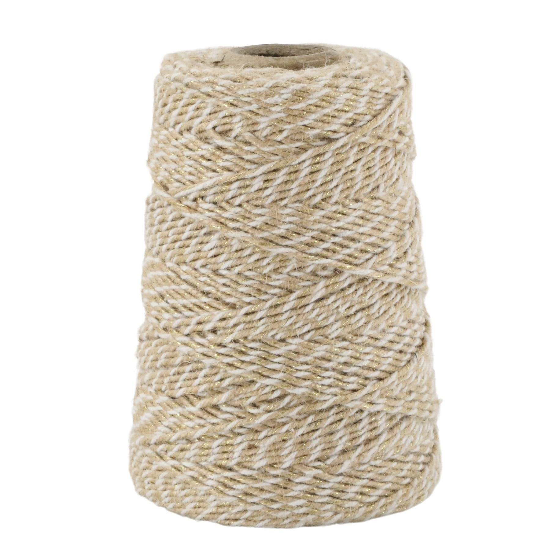 Dekoratívny krútený špagátik od dánskej značky Chic Antique je v dvojfarebnom prevedení bielej a prírodnej béžovej, doplnený zlatou niťou, ktorá mu dodáva luxusný nádych. Špagátik je pevný a oceníte ho pri kreatívnej chvíli, balení darčekov aj bežne v domácnosti. dĺžka 160 m Vyrobené z juty, bavlny a polyesteru.