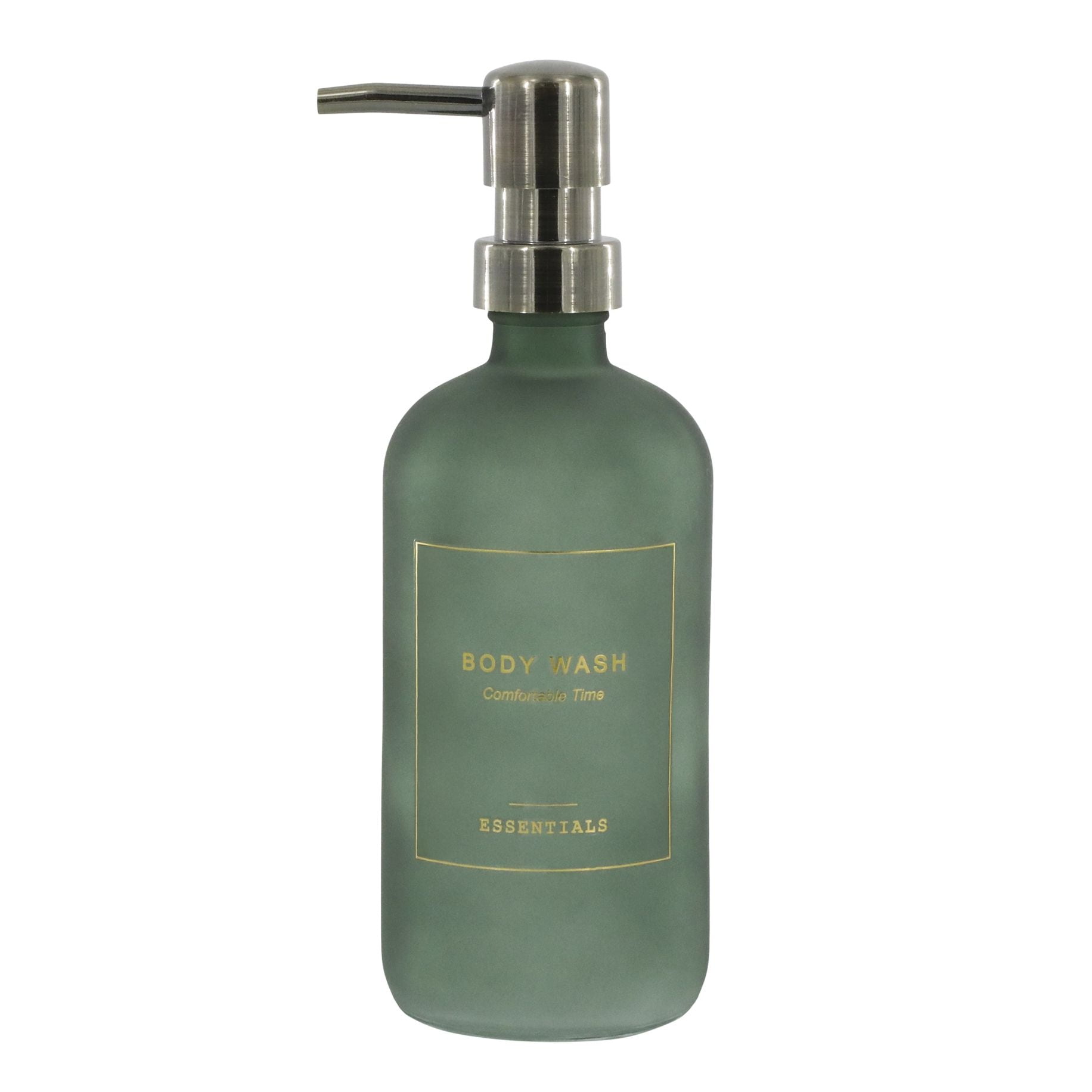 Sklenená fľaša v tlmenom zelenom odtieni má praktickú pumpičku z pevného plastu v striebornej farbe a skrutkovací uzáver z bambusu. Nádherný dizajn od dánskej značky Chic Antique so zlatými nápismi elegantne doplní priestor okolo vane alebo sprchy. A čo je najlepšie, môžete ju opakovane používať, stačí ju umyť a znovu naplniť. objem 500 ml / priemer 7,5 cm / výška 21,5 cm Vyrobené zo skla, bambusu, ABS a polypropylenu.