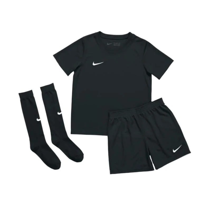 Nike JR Dry Park 20 * komplet piłkarski junior dla chłopców w wieku od 3-8 lat * w komplecie : t-shirt, shorty oraz getry * wykonany w technologii DRI-FIT - oddający pot na zewnątrz T-shirt : * skład : 100% poliester * kolor : czarny Shorty : * skład : 100% poliester * kolor : czarny Getry : * skład : 71% nylon 26% poliester 3% elastan * kolor : czarny Strój Nike Dri-Fit Park jest wykonany z materiału odprowadzającego wilgoć, dzięki czemu zapewnia małym zawodnikom suchość i skupienie na grze. Koszulka, spodenki i skarpety powstały z myślą o wygodzie. Siateczka z tyłu koszulki zwiększa wentylację. Elastyczny pas w spodenkach jest podszyty siateczką, dzięki czemu daje przewiewność.