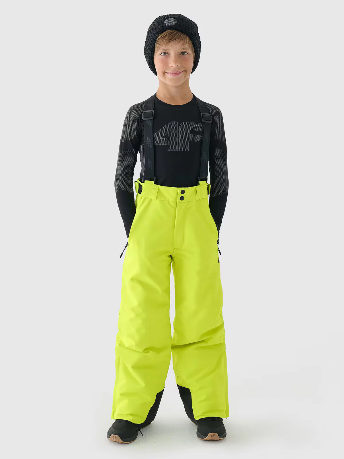 Chlapčenské lyžiarske nohavice so šľapkami s pokročilou technológiou, ideálne na aktivity strednej intenzity. Špeciálne navrhnuté tak, aby zvládli zimné podmienky počas dynamickej jazdy. Nohavice s kvalitnou membránou a nepremokavým povrchom chránia pred meniacimi sa horskými podmienkami na svahu. Zateplenie účinne chráni pred chladom a zároveň nepridáva zbytočnú hmotnosť. Táto kombinácia technológií, odolných materiálov, účinnej izolácie a funkčných doplnkov vytvára spoľahlivú ochranu, ktorú nadšenci zimných športov očakávajú. Majú pravidelný strih, ktorý sa pohodlne prispôsobí telu, a nastaviteľné nohavice s bočným zipsom. Chlapčenské lyžiarske nohavice 4F majú membránu NeoDry s parametrami 8000/5000, zvýšenú funkčnosť vďaka podporným technológiám, ide o hydrofóbnu vrstvu a nepremokavé švy. Chlapčenské zimné nohavice majú na bokoch 2 vrecká na zips. Pás s trojitým zapínaním na zips, suchý zips a patentky. Na bokoch sú tiež pásy na suchý zips, ktoré umožňujú presné prispôsobenie v páse. Pútka na opasok umožňujú nosiť ďalší opasok alebo pripevniť drobné príslušenstvo. Tvarovaná oblasť kolien poskytuje väčšie pohodlie počas používania. Odnímateľné, nastaviteľné šle. Vnútorné snehové nohavice so suchým zipsom a patentkami chránia pred chladom a prenikaním snehu dovnútra nohavíc.