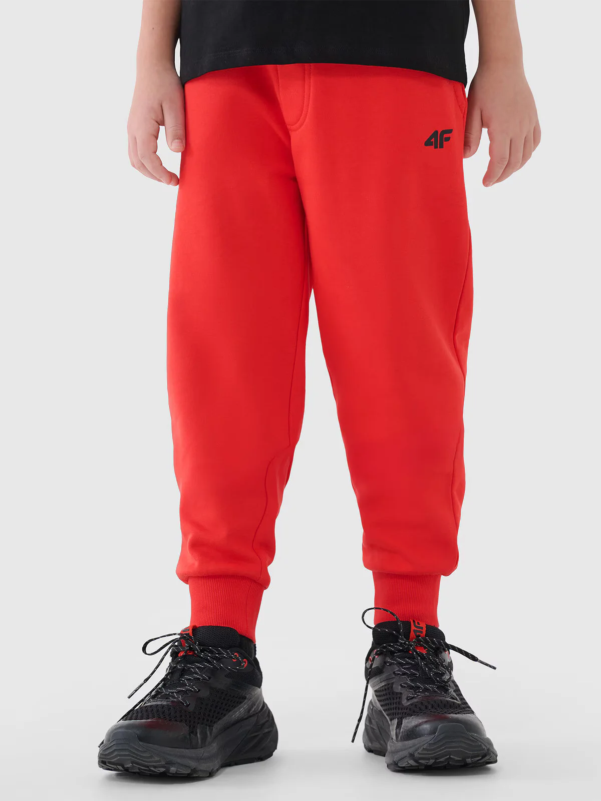 Chlapčenské tepláky typu jogger sú ideálne na bežné aj športové každodenné štylizácie. Majú regular strih, ktorý sa pohodlne prispôsobí telu, a zúžené nohavice zakončené elastickým lemom. Francúzsky froté úplet je z jednej strany hladký, zatiaľ čo na druhej strane je viditeľné slučkové tkanie. Chlapčenské tepláky 4F sú vyrobené zo stredne hrubého úpletu s gramážou 260 g/m2, vďaka čomu sú mäkké a priedušné. Chlapčenské tepláky 4F sú vyrobené zo 78 % z bavlny, vďaka čomu sú mäkké, odolné a príjemné na dotyk. Vďaka prímesi polyesteru (22 %) si materiál zachováva strih a je odolný voči opotrebovaniu počas mnohých sezón. Kefovaná vnútorná strana zaručuje väčšiu hrejivosť, vďaka čomu sú nohavice ideálnou voľbou na chladnejšie dni. Na bokoch sú 2 otvorené vrecká. Elastický pás s vonkajším nastavením na šnúrku.