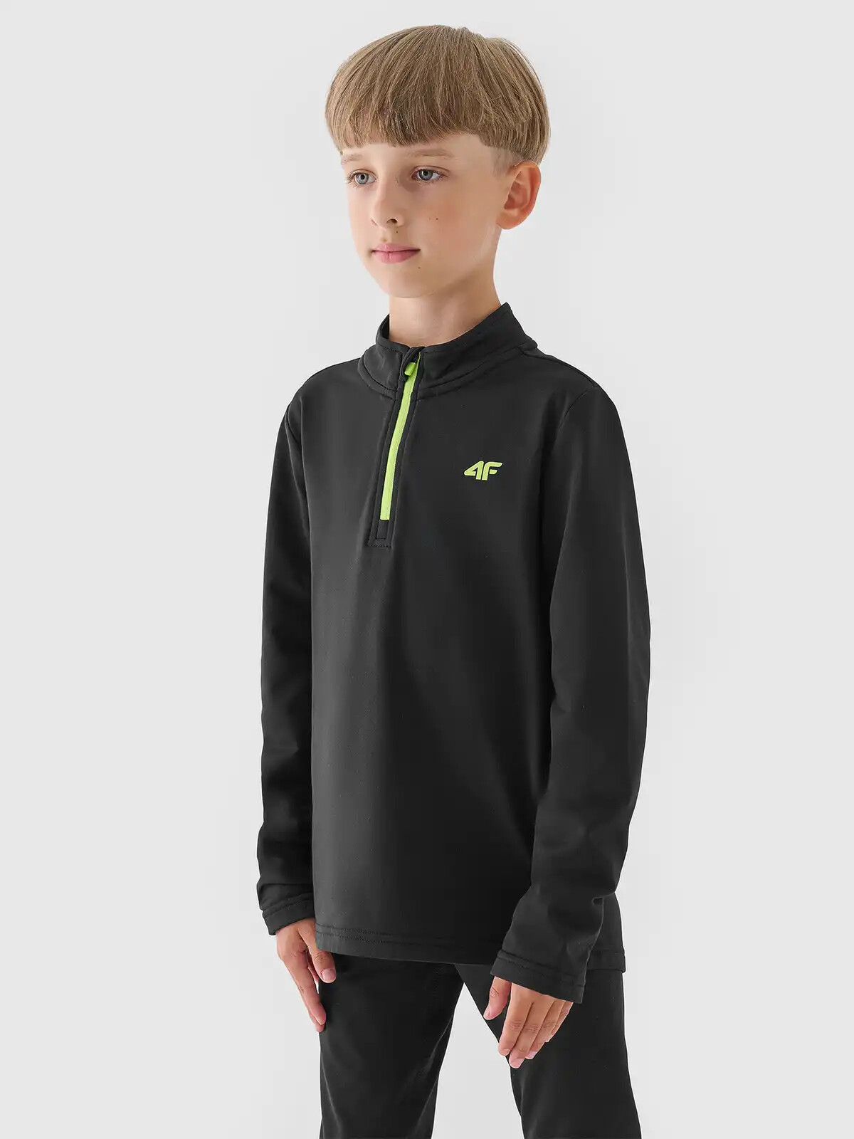 Chlapčenské termo tričko - účinná izolácia pre všetky aktivity a ročné obdobia. Rozmanitosť a charakteristika zimných športov si vyžadovala riešenia, ktoré by fungovali v premenlivých poveternostných podmienkach a poskytovali úplnú voľnosť pohybu. Výsledkom je česaná spodná bielizeň, ktorá poskytuje vysoké tepelnoizolačné vlastnosti a tepelný komfort počas dlhých hodín na svahu aj počas obľúbených každodenných aktivít v chladných dňoch. Má pravidelný strih, ktorý sa pohodlne prispôsobí telu, a štandardnú dĺžku, ktorá siaha po líniu bokov. Je vyrobená z dvojvrstvového úpletu s hrejivou, česanou vnútornou stranou a hladkou vonkajšou stranou. Je príjemná v kontakte s pokožkou a mäkká na dotyk. Najlepšie funguje ako izolačná, druhá vrstva oblečenia, ktorú možno nosiť priamo napríklad na termo tričku alebo pod bundou, najmä počas chladných a sychravých dní. Teplé termoprádlo je vyrobené zo syntetického materiálu, ktorý zaručuje odolnosť a ľahko sa udržiava. Vďaka prídavku elastanu (10 %) je materiál pružný a pohodlne sa prispôsobí telu. Chlapčenské termotričko s technológiou 4FWarm zaisťuje tepelný komfort a podporuje udržiavanie stabilnej telesnej teploty. Stojatý výstrih so zapínaním na zips s interlokom. raglánové rukávy neobmedzujú pohyb.