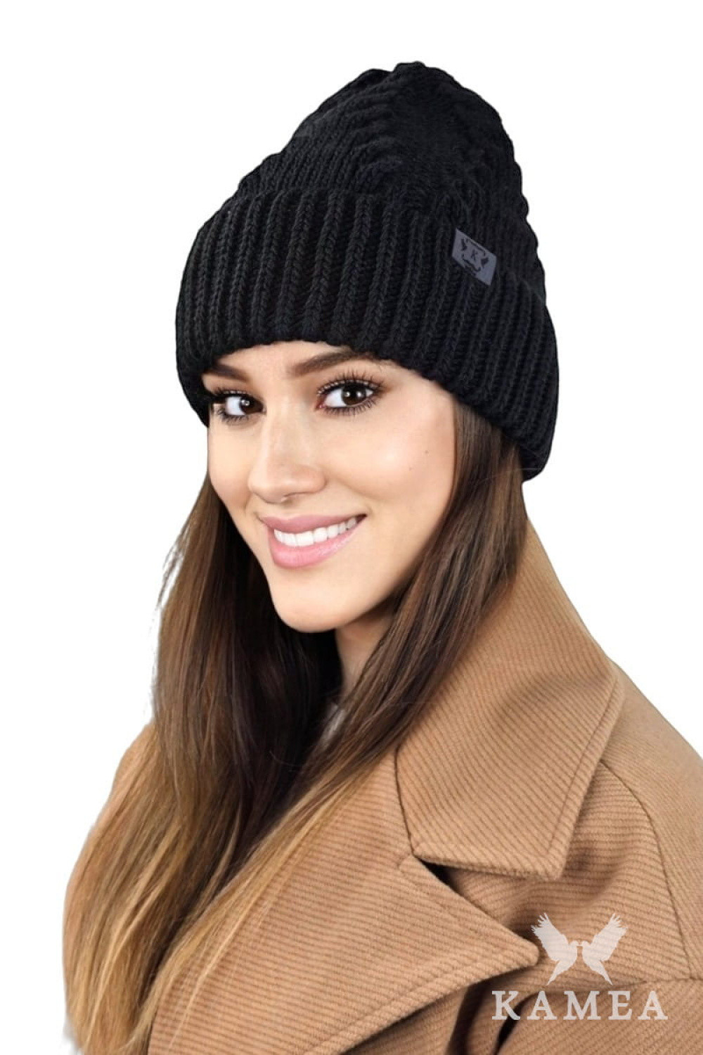 Dámska zimná čierna čiapka STELLA je esenciou dokonalosti a perfekcie. Jej ideálny tvar a husté pletenie pridávajú jemnosť a eleganciu. Jednoliata čierna farba zdôrazňuje fantastické vzory, ktoré sa krásne prejavujú na svetle. Jemná na dotyk, poskytujúca teplo a neprekonateľný komfort nosenia. Skvele sa hodí ku každému typu štylizácie, ideálne na chladné jesenné a zimné dni. Dostupná v niekoľkých farebných variantoch, výrobky značky KAMEA zaručujú najvyššiu kvalitu. Zloženie 50% AKRYL, 30% WE?NA, 20% POLYAMID