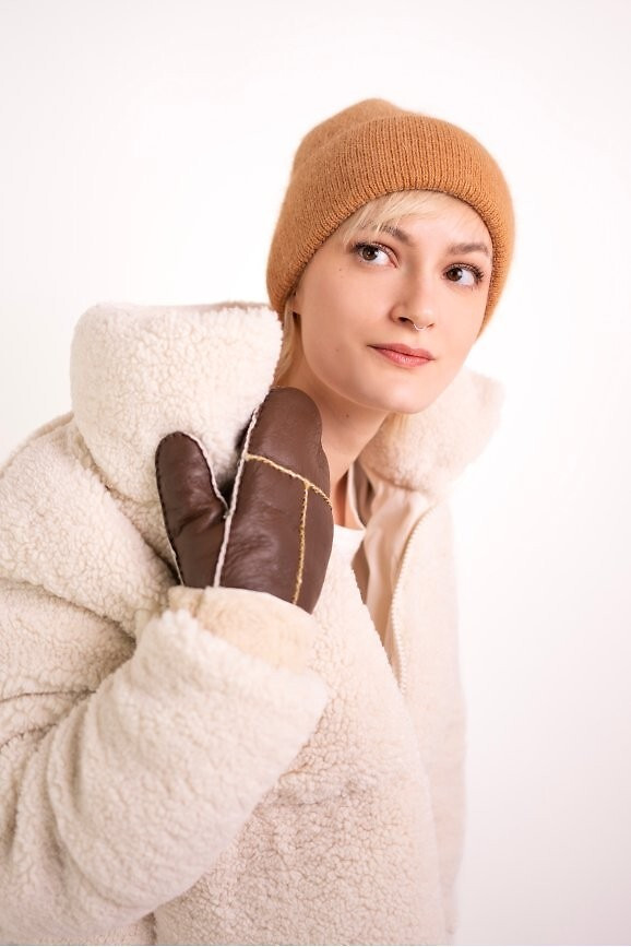Klasická dámska zimná čiapka - univerzálny strih - z elastického materiálu s angorským vzorom - jedna vrstva materiálu, bez dodatočného zateplenia Zloženie: 60 % akryl, 40 % angora