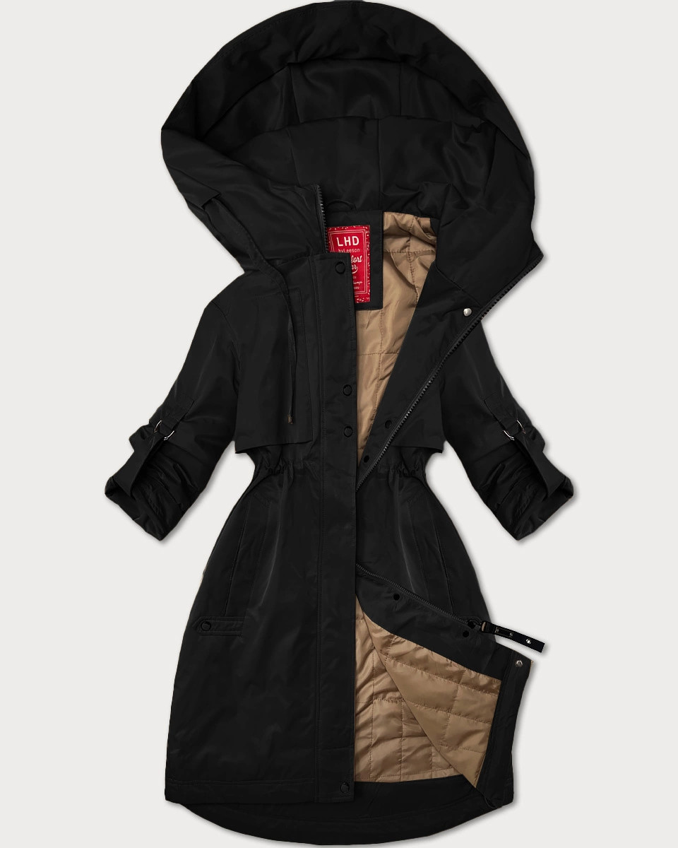 Čierna dámska bunda s vyhrnutými rukávmi LHD (LHD-24591) odstíny černé M (38)