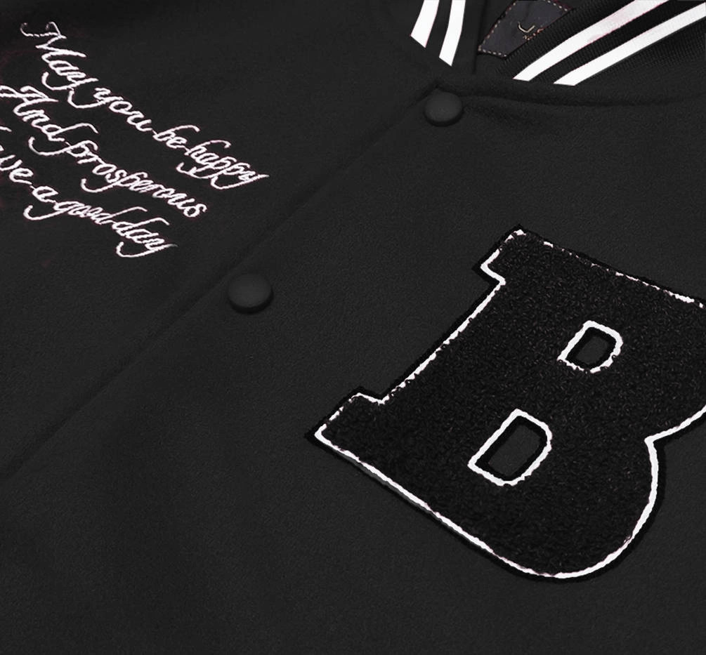 Venujte prosím pozornosť pri výbere veľkosti podľa veľkostnej tabuľky uvedenej nižšie. Veľkosti nezodpovedajú bežne nosené konfekciu. Tenká bunda typu college Bunda má voľný strih, podšívku, zapína sa patentkami a má dve vrecká so zapínaním na patentky. Rukávy sú ušité z eko kože. Model má dĺžku k bokom. Zloženie: 100% polyester.