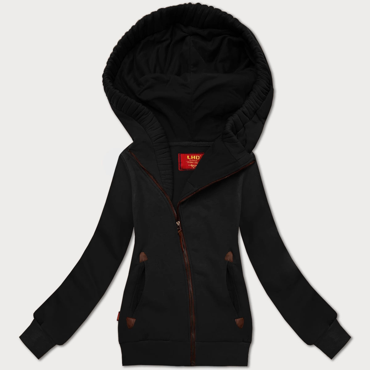 Domov Oblečenie a móda Dámske oblečenie Dámske mikiny Čierna dámska mikina s asymetrickým zipsom LHD (AMG-61) odstíny černé S (36)