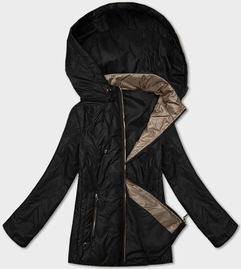 Čierna dámska prešívaná bunda s odnímateľnou kapucňou S'West (B8356-1) odstíny černé 48