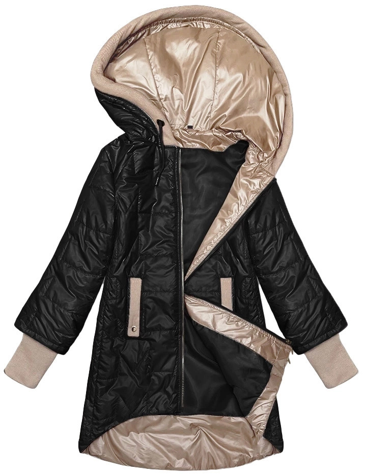 Čierna dámska prešívaná bunda s ozdobným sťahovacím lemom S'West (B8345-1) odstíny černé 48