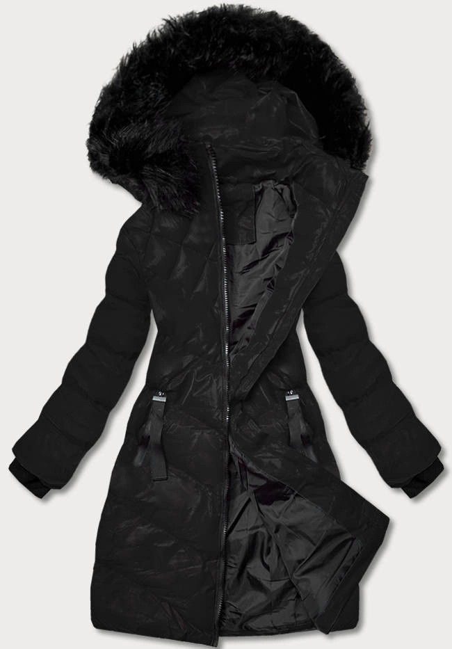 Domov Oblečenie a móda Dámske oblečenie Dámske bundy a kabáty Čierna dámska zimná bunda s ozdobným prešívaním (5m730-392) odstíny černé L (40)