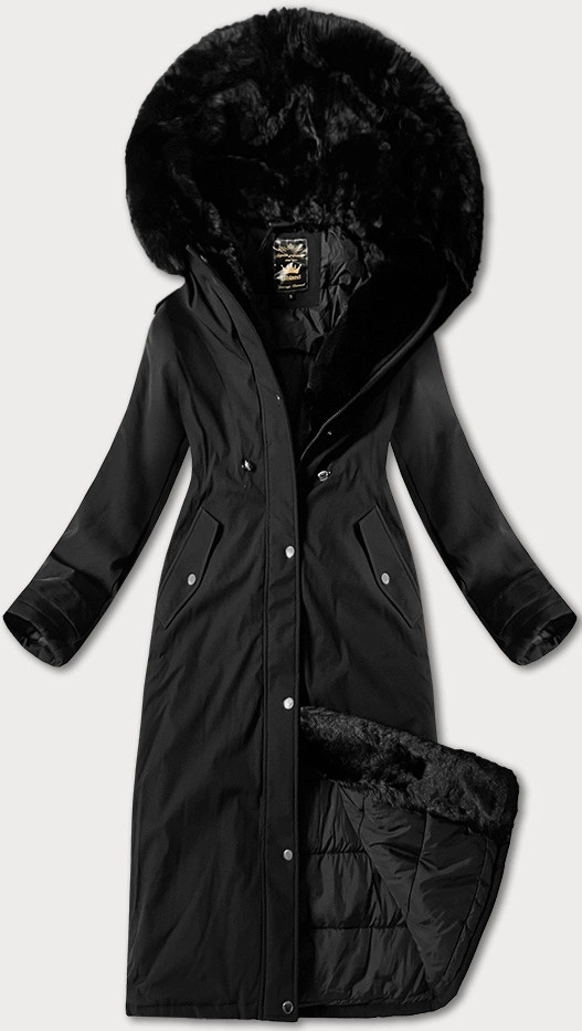 Čierna dlhá hrubšia zimná bunda s kapucňou Libland (7614) odstíny černé M (38)
