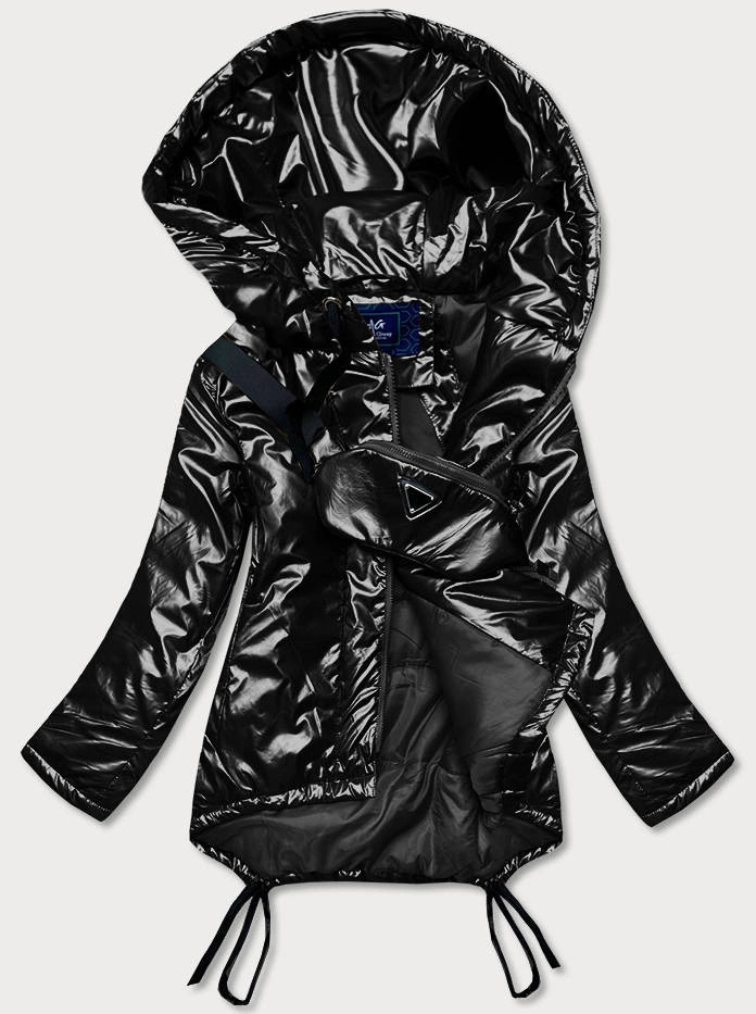 Čierna krátka dámska zimná bunda s obličkou (omdl-018) odstíny černé L (40)