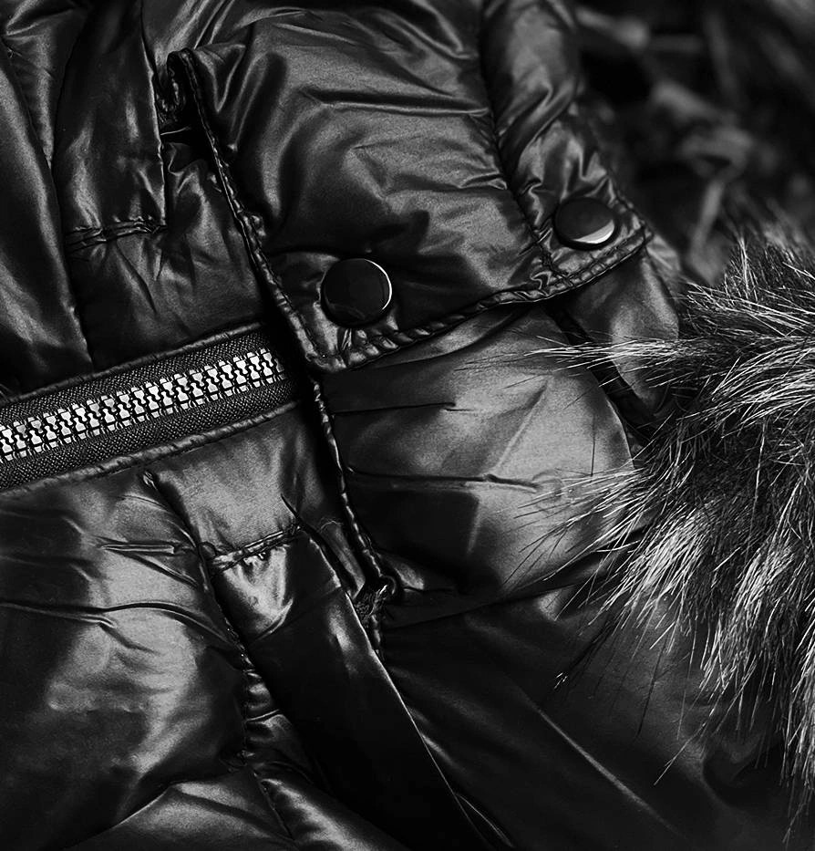 Bunda s kapucňou Bunda má jednoduchý strih, je zateplená syntetickou páperovou výplňou, má dve vrecká a zapínanie na zips. Model má kapucňu lemovanú kožušinou. Kapucňu a kožušinový lem kapucne je možné odopnúť. Bunda má dĺžku po boky. Zloženie: vrchná vrstva - 100 % nylon, podšívka - 100 % polyester.