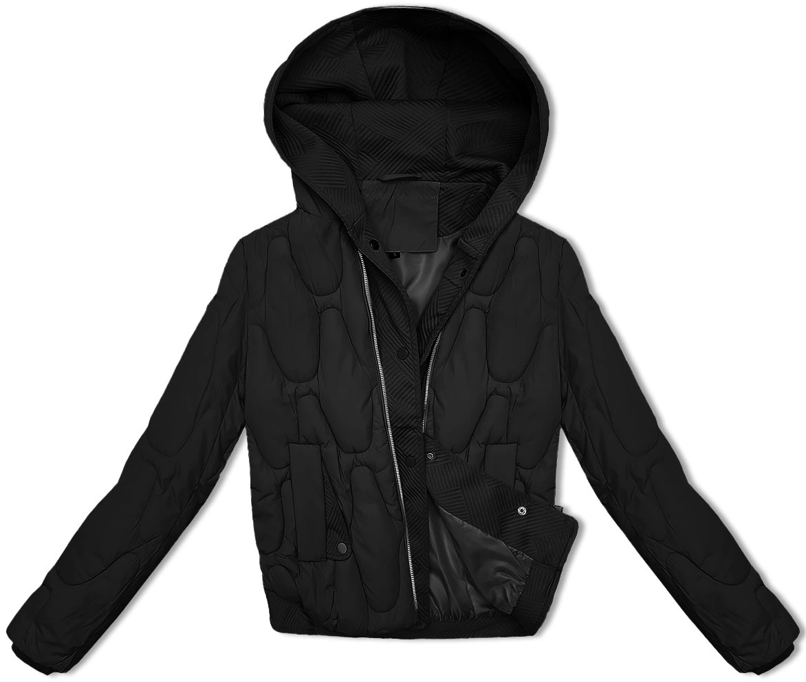 Čierna krátka zimná bunda s ozdobnou kapucňou S'west (B8261-1) odstíny černé L (40)