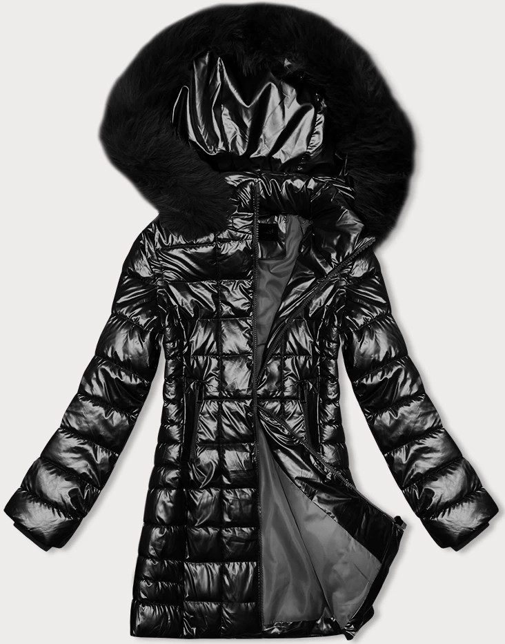 Čierna metalická dámska bunda s kapucňou J Style (16M9120-392) odstíny černé L (40)