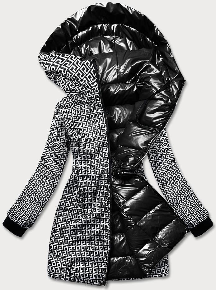Čierna obojstranná dámska metalická bunda (b8070-1) odstíny černé XXL (44)